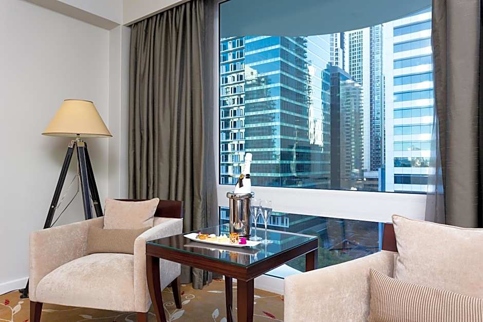 Enjoy a complimentary bottle of French Champagne upon arrival while staying in our elegantly appointed 1 bedroom suite located on the top floor with separate dining and lounge area for 6-8 people offering panoramic views of the City Botanical Gardens . This suite features king size bed, walk-in wardrobe, robes and slippers, suit press, powder room, private bathroom with walk-in shower and corner spa and deluxe bathroom amenities. Also equipped with a mini fridge and espresso pod coffee machine, KEYPR In-Room Service Tablet and unlimited WiFi. Experience the luxury of space as our Executive suites are a very spacious 84 SQM.