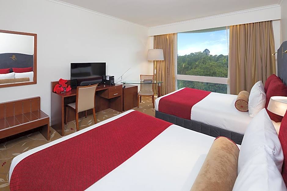 Sophisticated classic design featuring 2 Queen beds, double glazed floor to ceiling windows offering natural light with park views, 49 inch LCD Television with Chromecast, espresso pod coffee machine, mini fridge, in room safe, private bathroom with shower over bath, KEYPR In-Room Service Tablet and unlimited FREE Wi Fi. A 'mini-bar pack' menu is available. Please note that the price is based on 2 guests. Maximum occupancy is 4 guests using existing beds only (see Hotel Policies). This room has no capacity for additional beds.