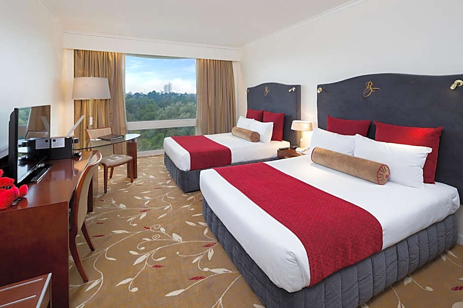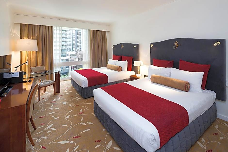 Reward yourself with premium comfort inclusions with a brand new bathroom, upgraded luxury Metis bathroom amenities, bathrobes and slippers, 2 Queen beds, 2 x complimentary drink vouchers, cookies and 2 x bottles of water. Along with the sophisticated classic design, all premium rooms consist of double glazed floor to ceiling windows offering natural light overlooking the City Botanic Gardens, 49 inch LCD TV with Chromecast, espresso pod coffee machine, mini fridge, in room safe, KEYPR In-Room Service Tablet, unlimited WiFi. A 'mini-bar pack' menu is available.